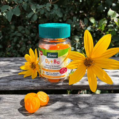 Die neuen D3 + B12 Gummies ergänzen das Sortiment der Kneipp® Nahrungsergänzungsmittel, die ich euch bereits im Blog vorgestellt habe. Sie können den Körper dabei unterstützen, den täglichen Anforderungen gerecht zu werden. Besonders in der dunklen Jahreszeit braucht unser Immunsystem zusätzliche Hilfe, um fit und gesund durch den Winter zu kommen. Mein Mann und ich greifen daher im Herbst und Winter zu Vitamin D3 – nicht nur wegen des fehlenden Sonnenlichts, sondern auch, weil wir uns überwiegend vegetarisch ernähren und so eine wichtige Quelle wegfällt.